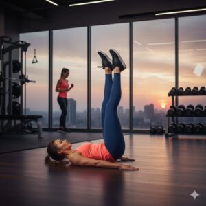Leg raises are like magic on your lower abs. Lay flat, keep legs straight, and then raise them straight up. Bend at the back without resting on the floor. Put your hands below your glutes to support the lower back.