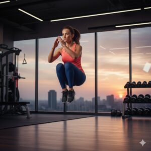 Burpees can be difficult and wild. Stand you on the floor and put your hands on the floor, jump up into a plank, do a push-up, and then jump your feet back into a standing position with a leap. This movement activates all and increases the heart rate in several seconds.